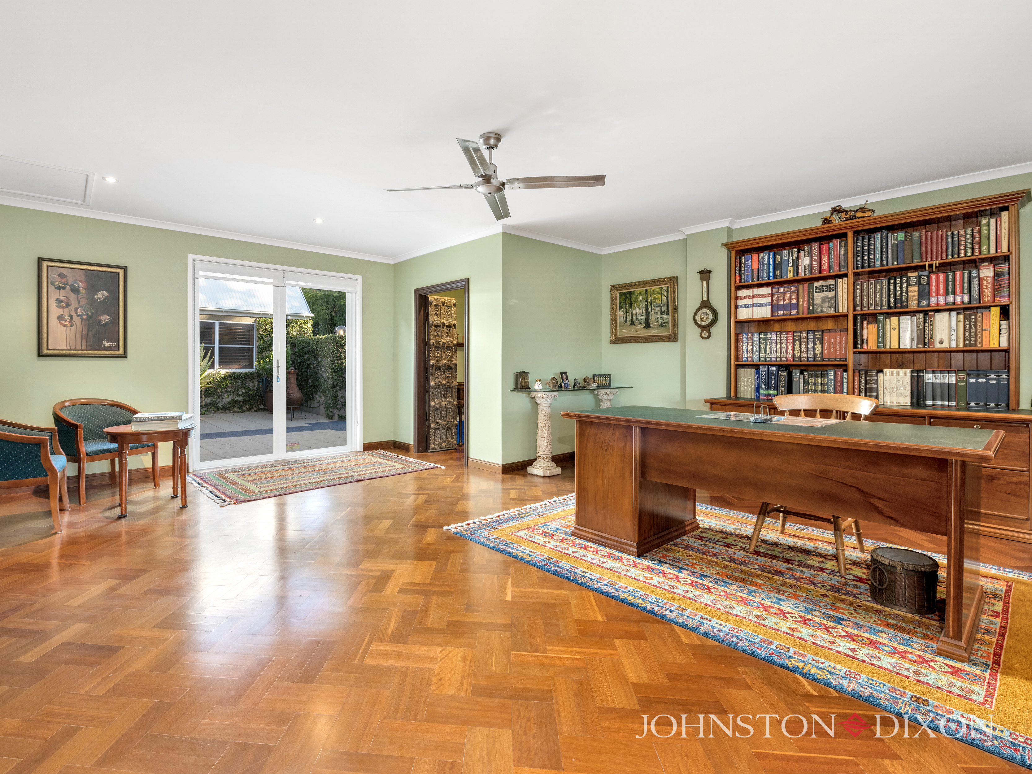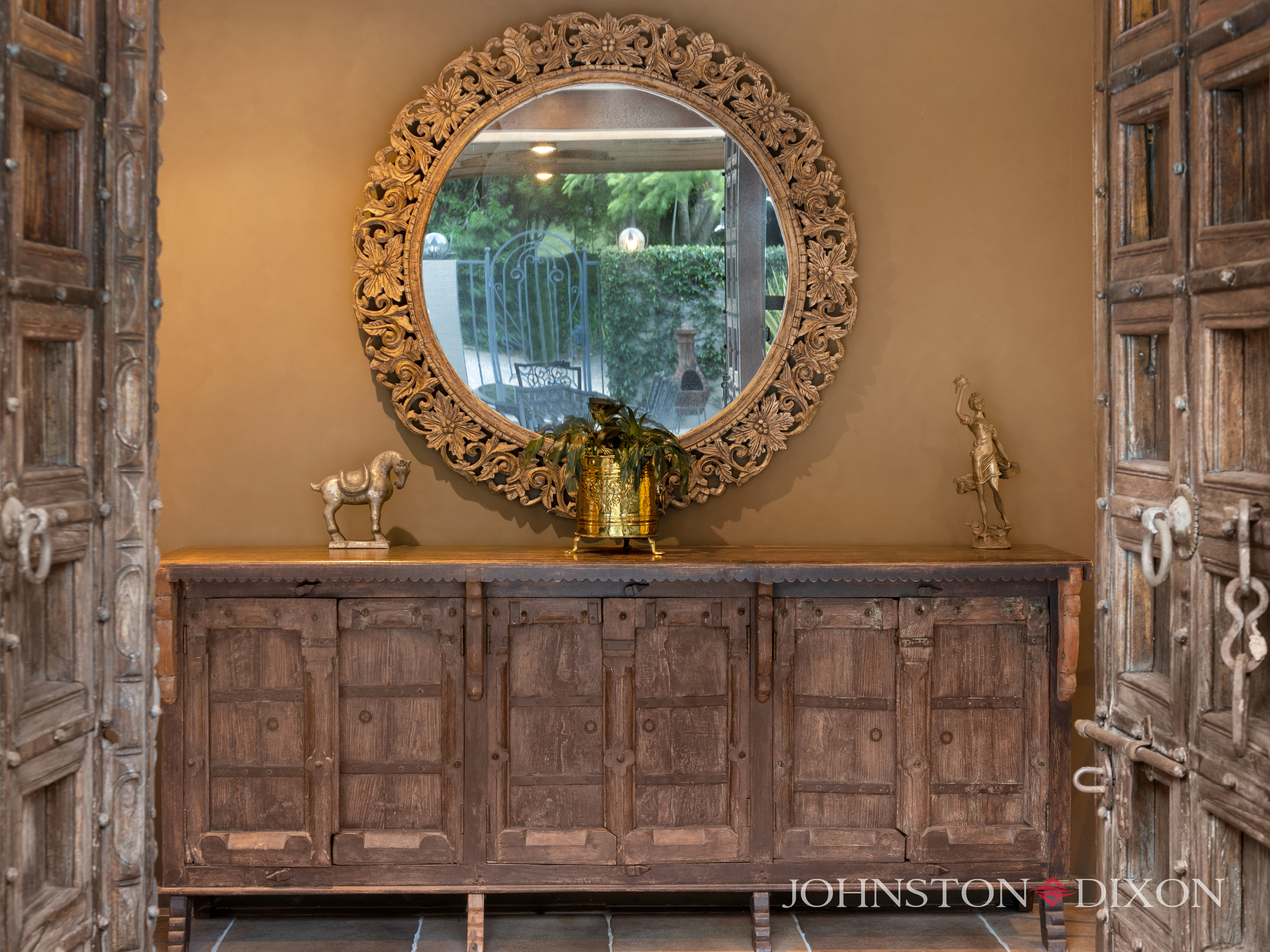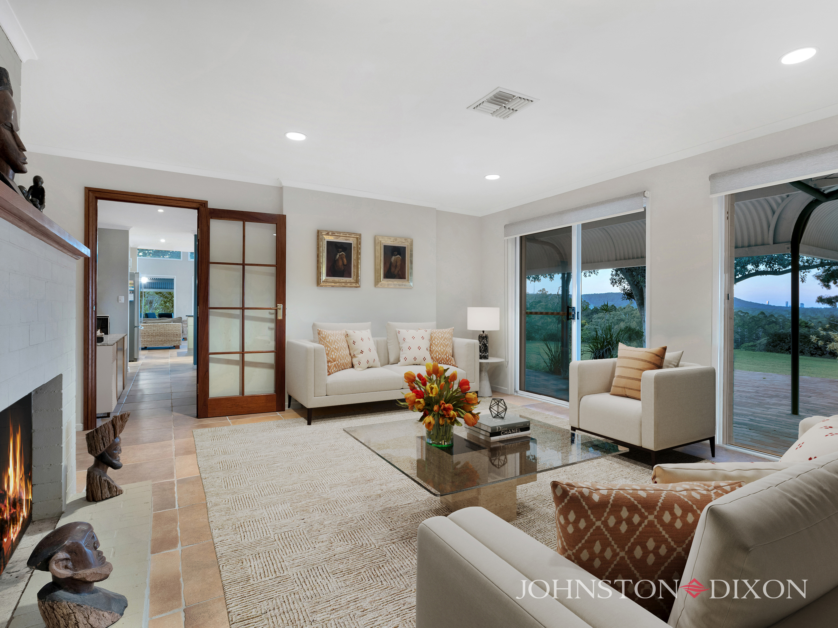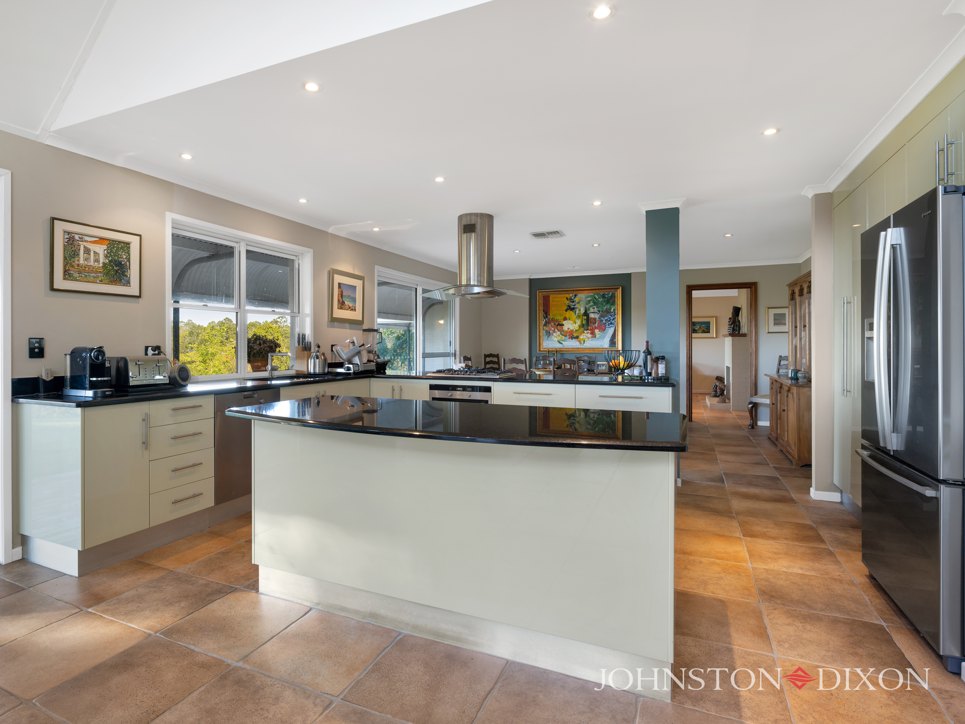 A gated entry and long tree-lined driveway signals the start of the journey to tranquillity as it sweeps upwards toward the rolling ridgeline crest and the estates sprawling homestead. From there step through signature wrought iron gates into an imposing central courtyard and then through antique Indian doors to the indoors. Here, the ambience of the home unfolds before you, off to the leaf the beating heart of the sanctuary beckons with a light, bright family room with towering high ceilings, cosy fireplace, tastefully appointed European kitchen and dining area, all positioned to take in the unveiling mesmerising views and cooling breezes, likewise the adjacent lounge with its inviting fireplace.