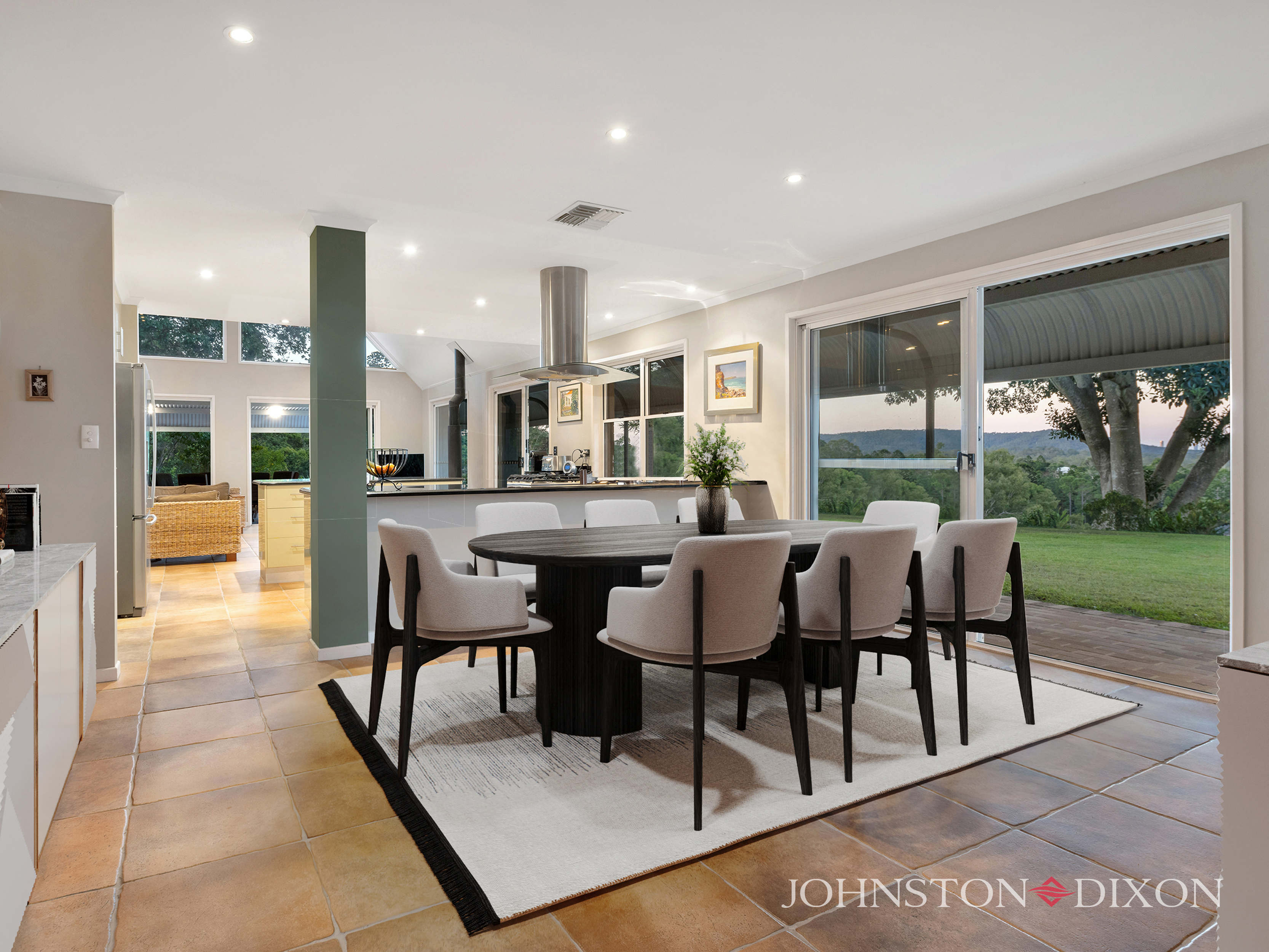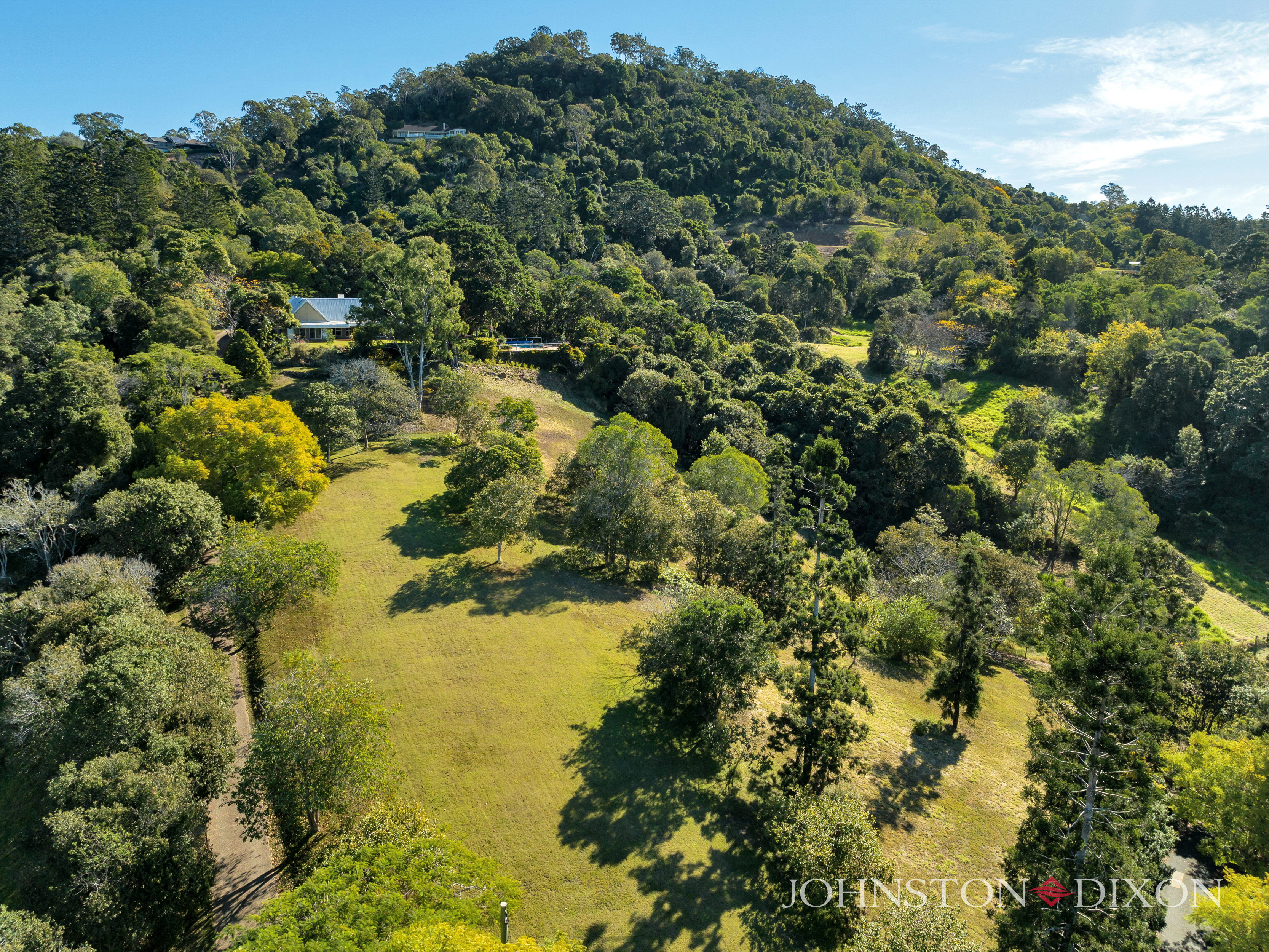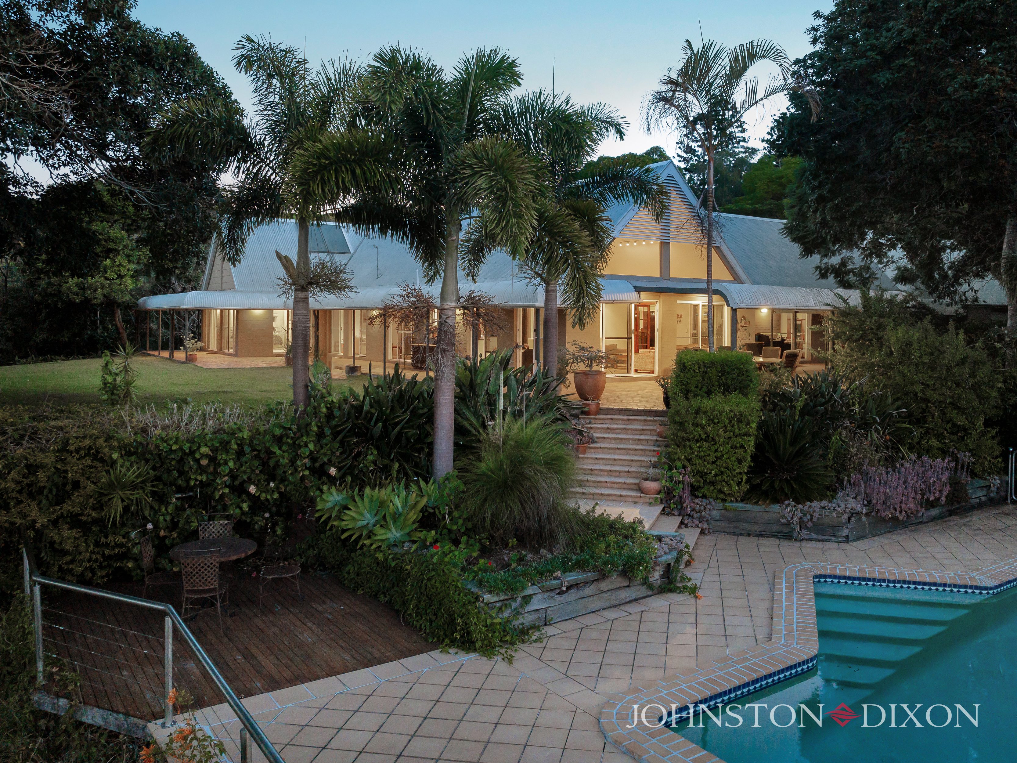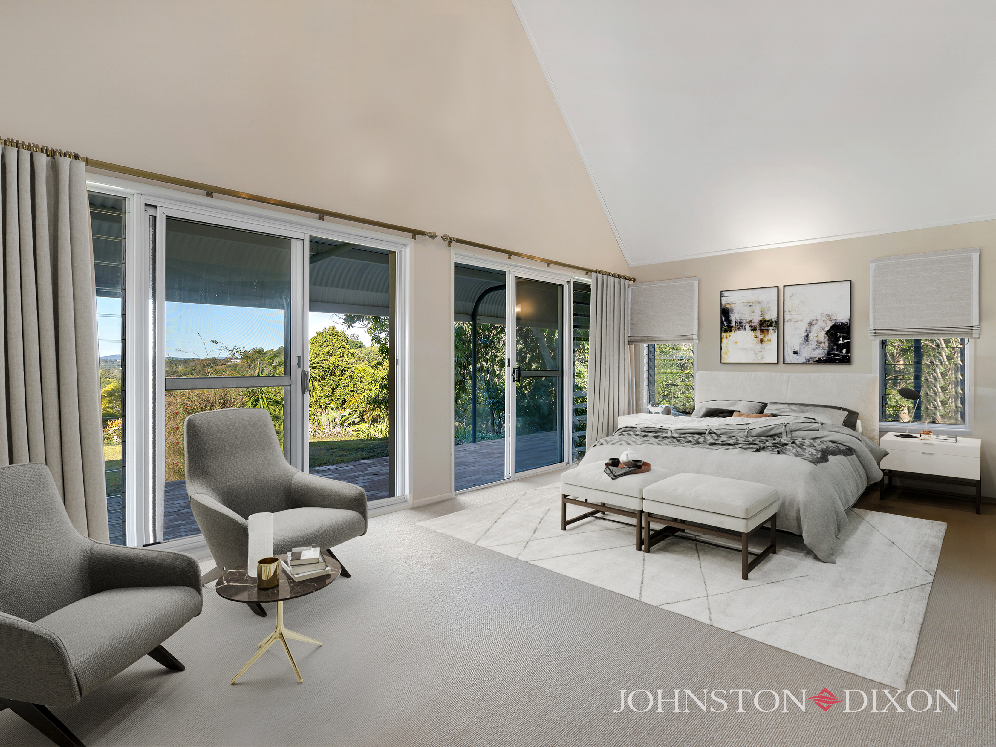 Moving out, a traditional bull-nose veranda wraps itself almost completely around the home providing multiple options to sit and savour the serenity, seclusion, prevailing breezes and amazing views night and day, conveniently off which is a raised pool and pool patio entertainment area gazing out across the majestic greenery. Beyond meander through the estates rolling park-like gardens and towering trees to discover the tennis court cocooned within a rainforest canopy, barn, stables, holding yard, and horse friendly field and paddocks.