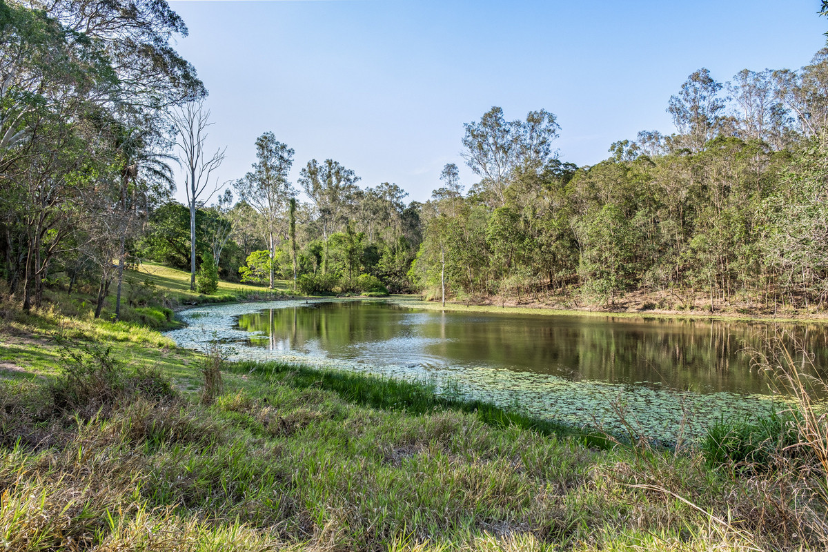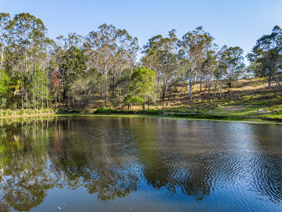The elevation harnesses beautiful breezes and affords exquisite views of the Boonah mountains, Mount Elphinstone, Pullenvale Valley and over the property's picturesque lake.