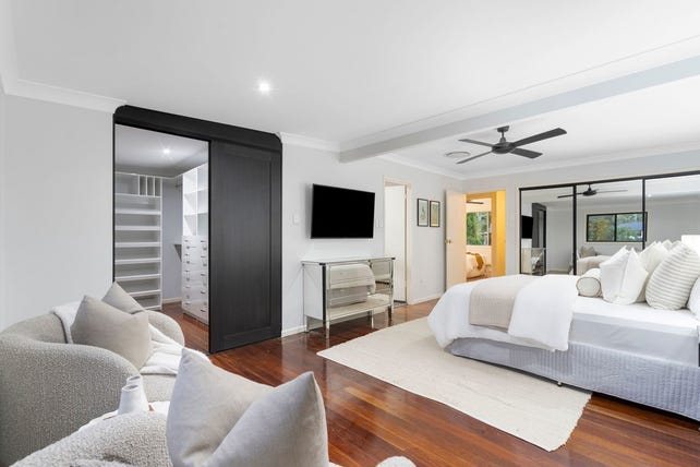 The parents' retreat is a standout, offering a 25m² private haven with custom walk-in robes, a built-in cupboard, and dedicated shoe storage for over 50 pairs. Two additional bedrooms with built-in wardrobes share a stylish, renovated bathroom.