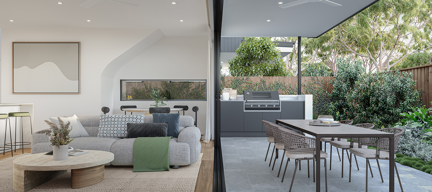 • Ground floor level with dining and living zones that flow onto a spacious covered alfresco zone with a built-in BBQ, perfect for socializing and relaxation. • Expansive alfresco and courtyard make this an ideal home for entertaining the whole family. • On the upper level, the three bedrooms are located with an additional study area, a central main bathroom, and a second living area. • Oversized master suite featuring a spacious walk-in robe, and an opulent ensuite with an indulgent freestanding bath & shower, providing a personal retreat for rejuvenation. • Modern bathroom with stone benchtops, brushed nickel basin mixers and shower mixers, vitreous china basins, and a china toilet suite. • Timber flooring throughout the kitchen and living areas, with plush wool carpet to bedrooms and tiles to wet areas, creating a harmonious blend of elegance, comfort, and practicality. • Laundry room upstairs, with optional upgrade for Miele washing machine and clothes dryer. • Ducted air-conditioning throughout and ceiling fans in bedrooms and living areas. • Double lock-up garage. • Fenced courtyard, offering a secure outdoor space lending itself sunset drinks, relaxed al fresco meals or a incredible area for your furry friends to roam.