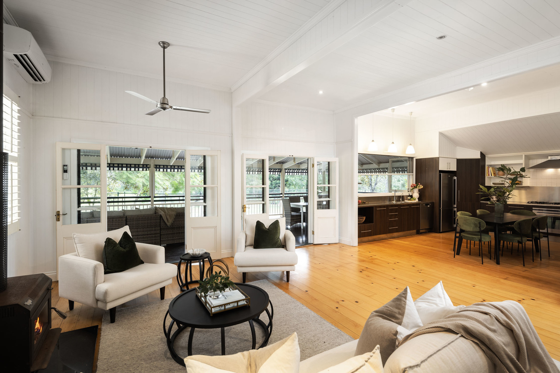 Quaint character charm and a peaceful lifestyle combine in this beautiful Queenslander home. The ultimate family entertainer occupying 2.8 acres of verdant grounds, the open expanses of greenery and sunshine play host to sprawling lawns, a swimming pool, a tennis court, and a selection of decks that cater to sensational hosting and relaxation.