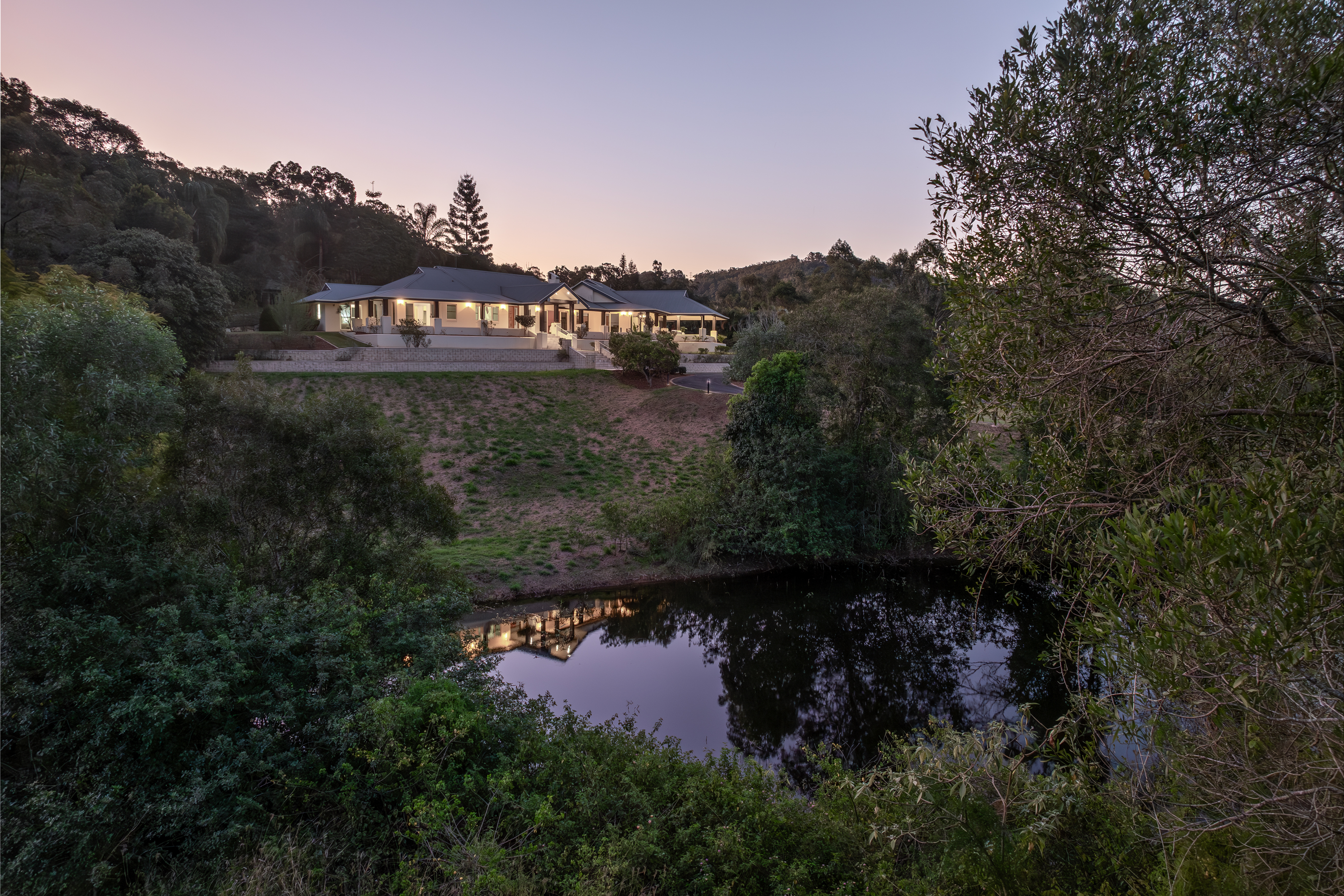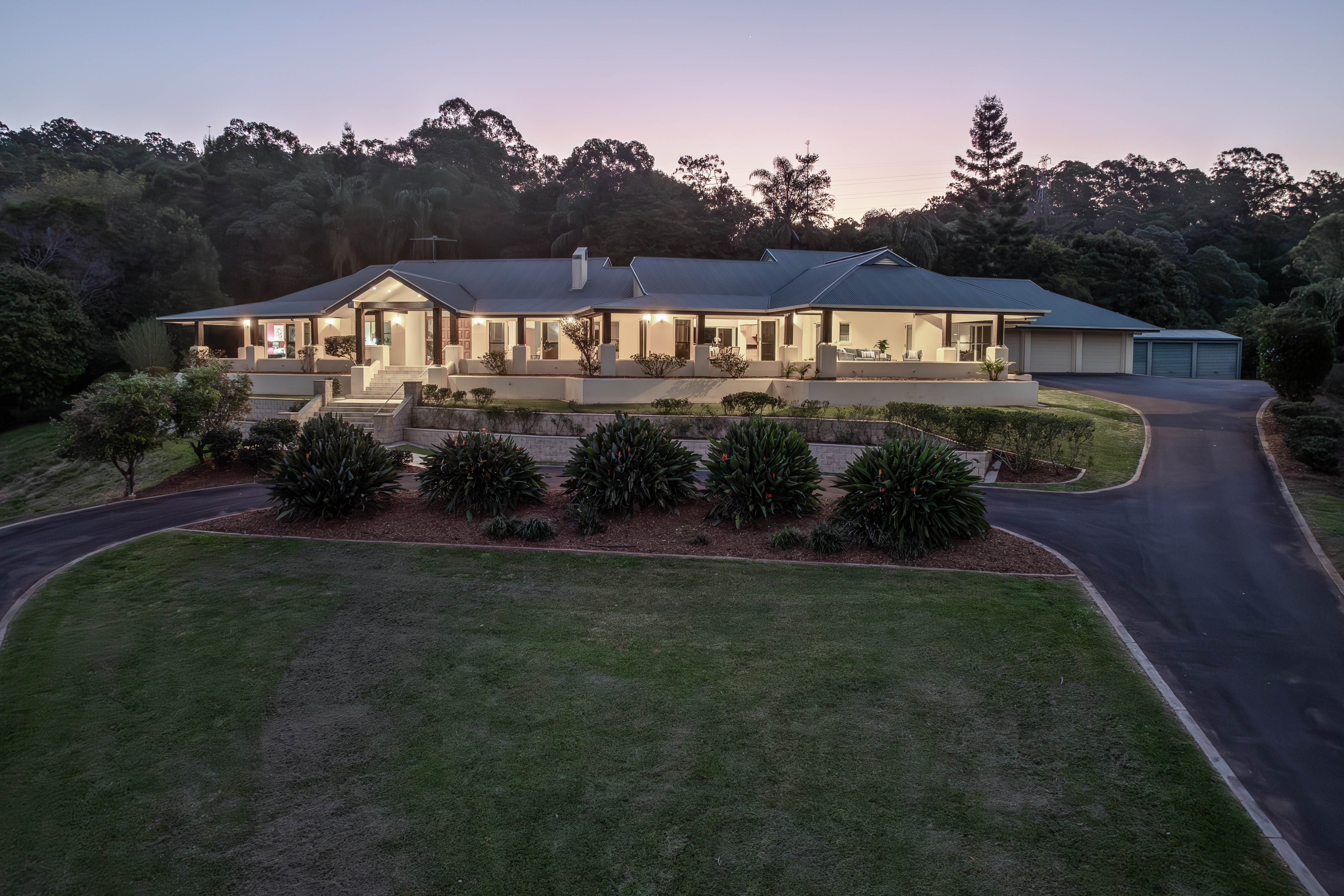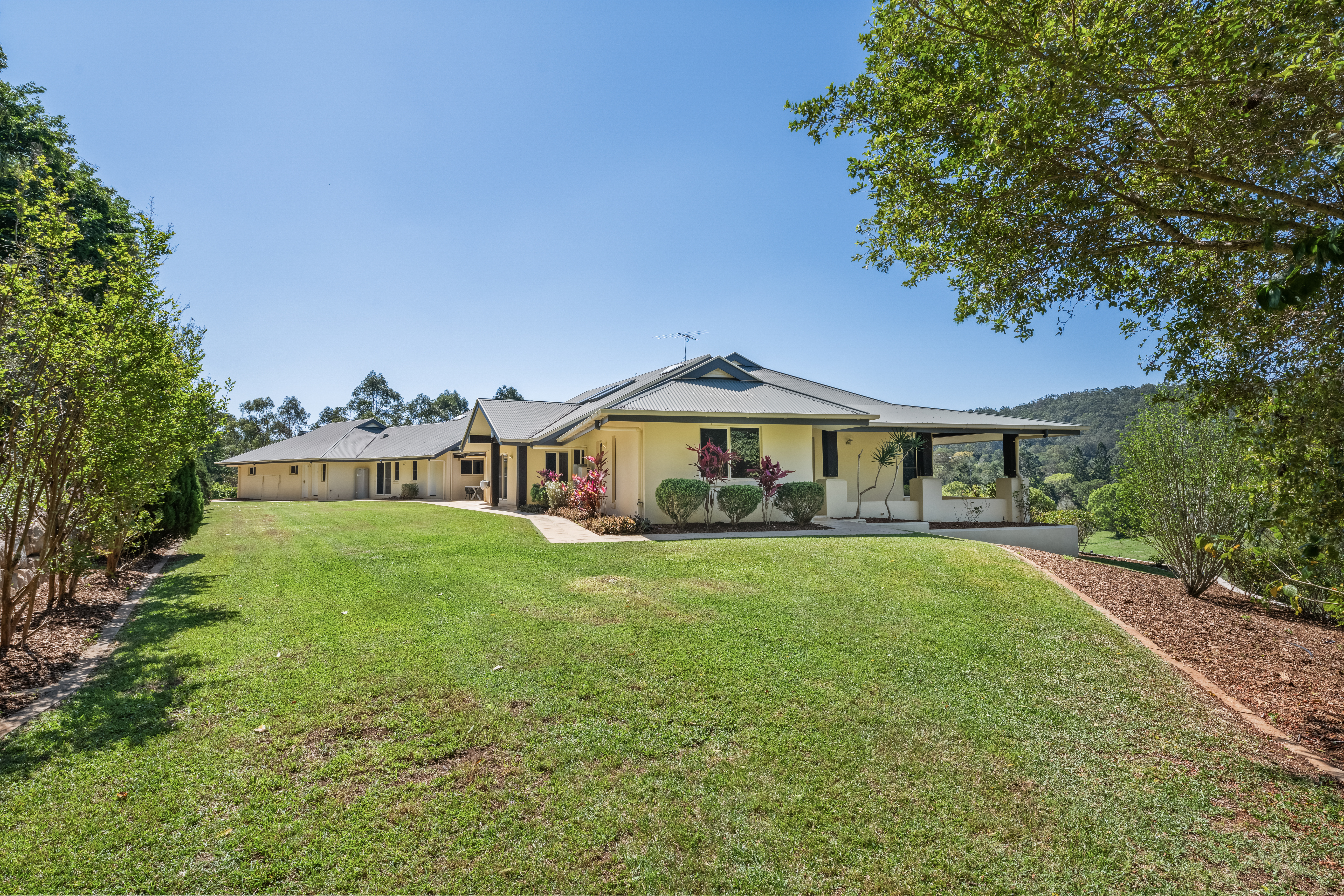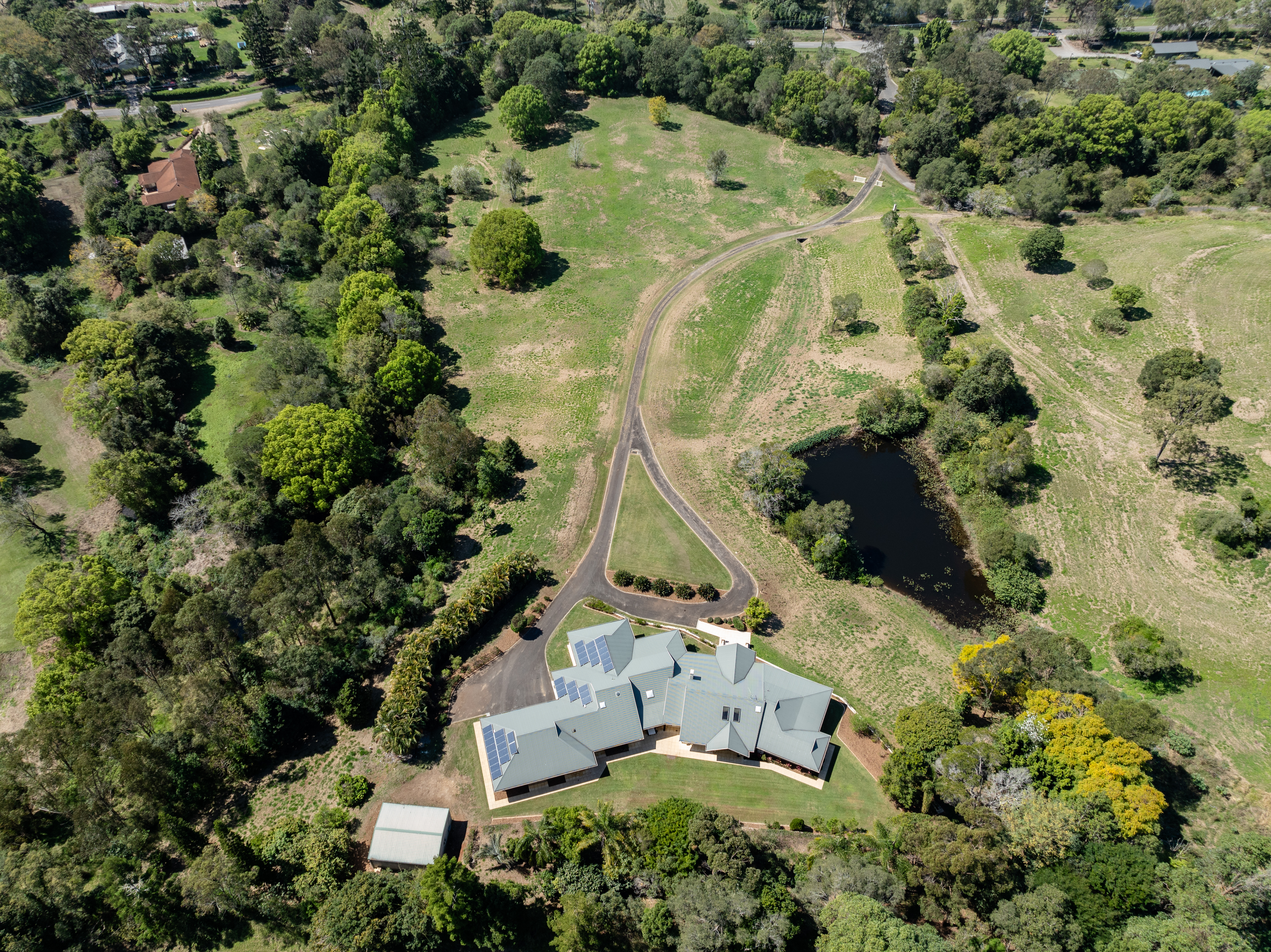 PRIVATE BROOKFIELD ESTATE For sale for the first time in history, this grand, eminently functional home with its wide easterly views across 4 hectares of prime, usable land is the final word in privacy and timeless elegance Features: • Long private driveway that sweeps up to an accommodative circular drive and invitingly wide porte-cochere • Seamless blend of casual and formal living, dining and entertainment areas complimented with fireplaces and statement feature walls that optimise sweeping views and cool breezes • Sumptuous accommodation in five comfortable bedrooms and a study, all with breathtaking views of the surrounding estate. • Indulgent master suite, a stylish, expansive private sanctuary with generous walk-in robes and tasteful ensuite • Wide wraparound verandas for peaceably indulging in the sublime outlook, breezes and overall unique ambiance of the distinctive and increasingly rare land holding • Copious car and equipment accommodation for at least six vehicles and equipment that includes a remote controlled three car garage with rear workshop, a large free-standing 3 bay shed, and multiple overflow parking areas for guests • Rolling hilltop with fertile land and mature fruit trees that rolls down past a deep dam to a wide frontage to Gold Creek itself