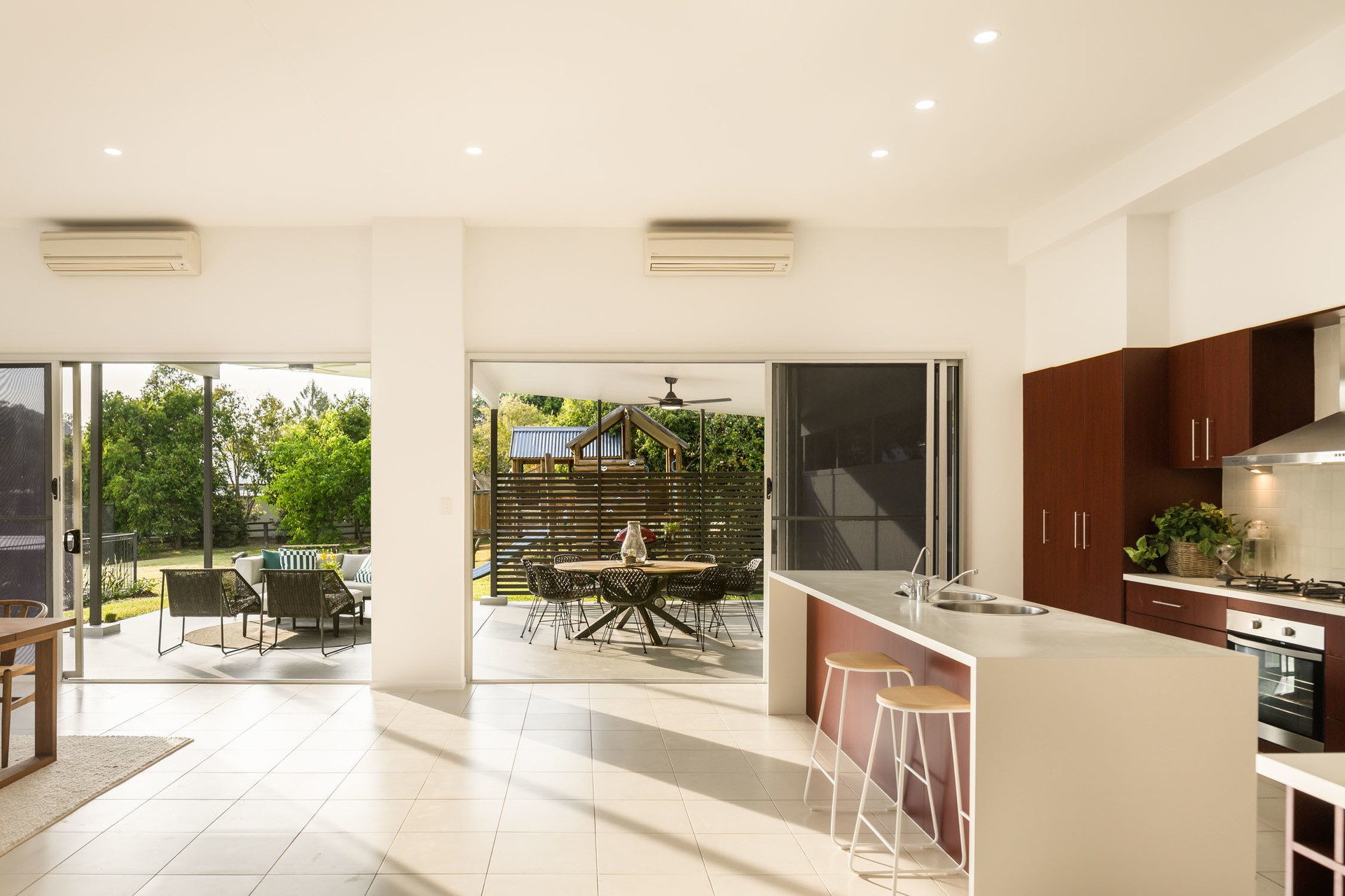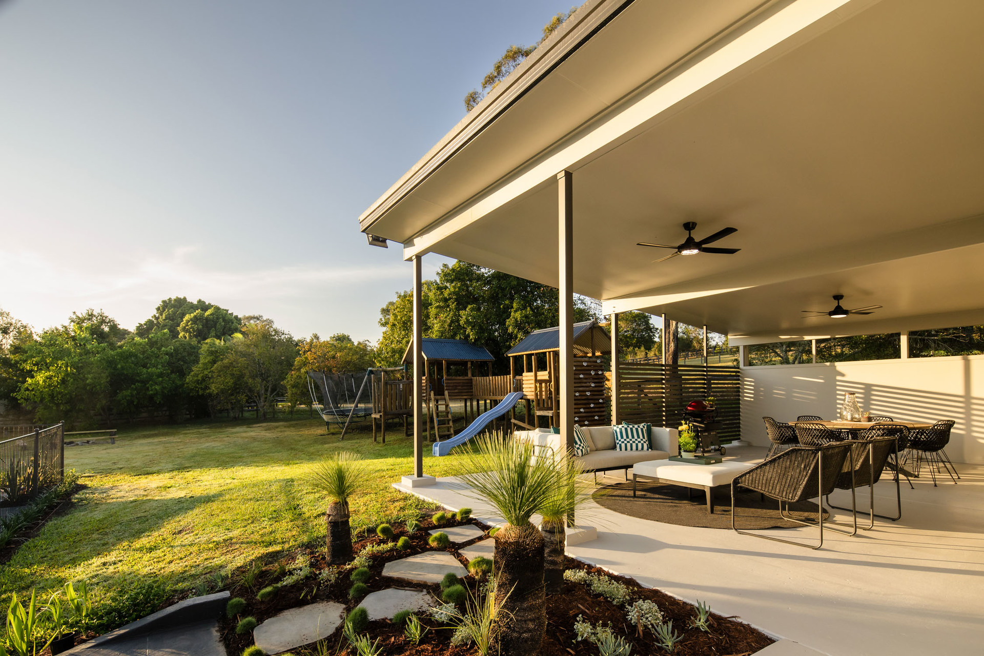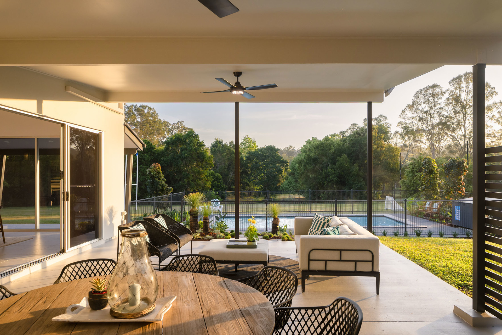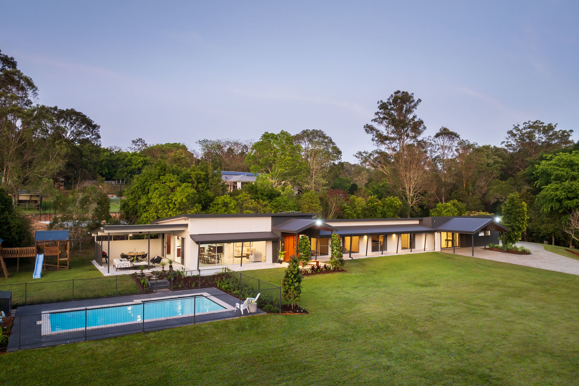 Picture your days bathed in the soft glow of the sunrise over Mt Coot-tha while children's laughter fills the air as they splash in the pool or race across the fields. Tennis, basketball and bike rides will all be enjoyed on the court, and the enchanting landscape invites children to swing from trees, watch the wildlife, and catch tadpoles and baby fish in the waterway after the rain. As evening falls, families can share feasts around the firepit, and kids can set up tents beneath the stars. A family oasis of recreation and relaxation.