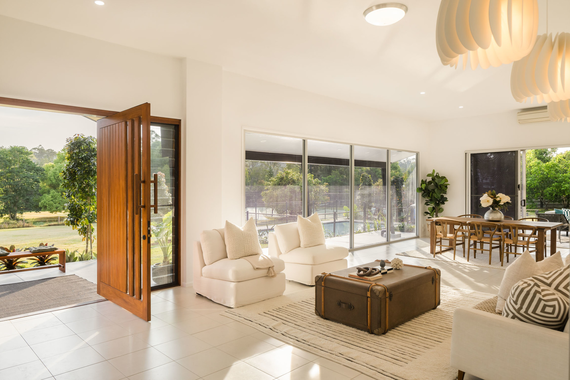 The contemporary home's single-level design lets the landscape shine and creates a flowing floor plan that opens outdoors from every room. Each inch of land is useable, easy to maintain, and forms a captivating space for fun, intimate gatherings and large-scale events. Offering the rare fusion of rural living with accessibility to urban convenience, the property is a short walk from the General Store, Brookfield State School and the Brookfield Showgrounds.