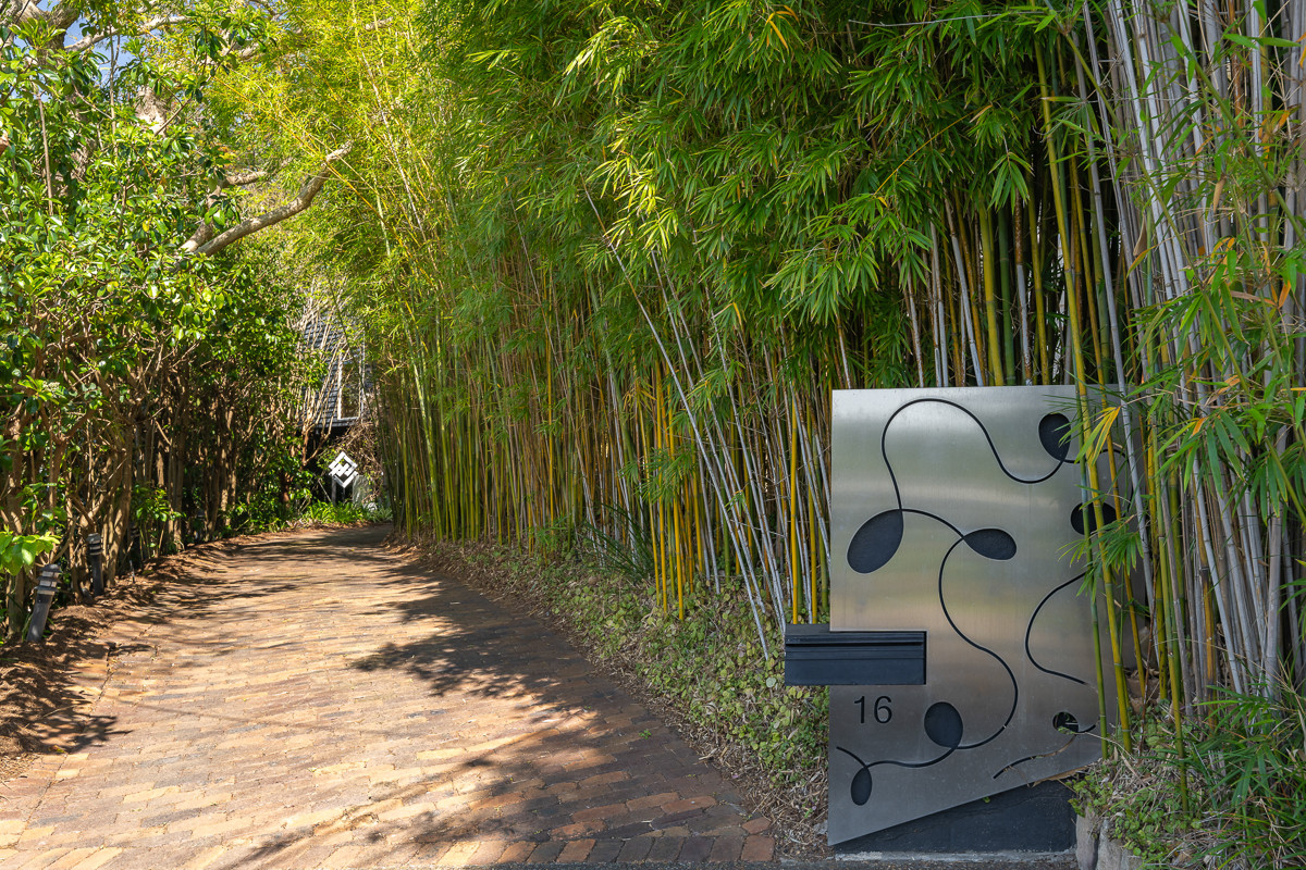 The gardens themselves are nothing short of a living, breathing work of art, meticulously designed by renowned landscape architect Jeremy Ferrier, and celebrated in several publications and magazines including Vogue Living and Belle Home. Featuring striking bamboo, mondo grass, sandstone seating, and eye-catching sculptures, the garden is both a canvas of dynamic seasonal colour changes and the more subtle changes of light and shade within a day.