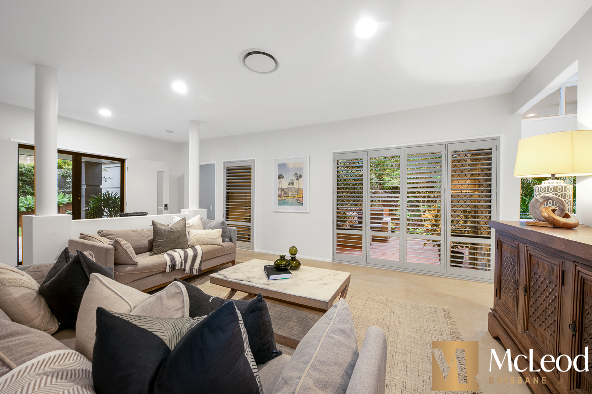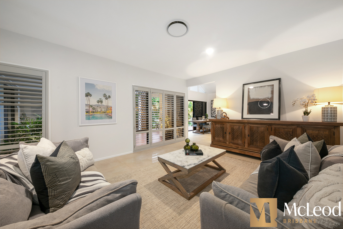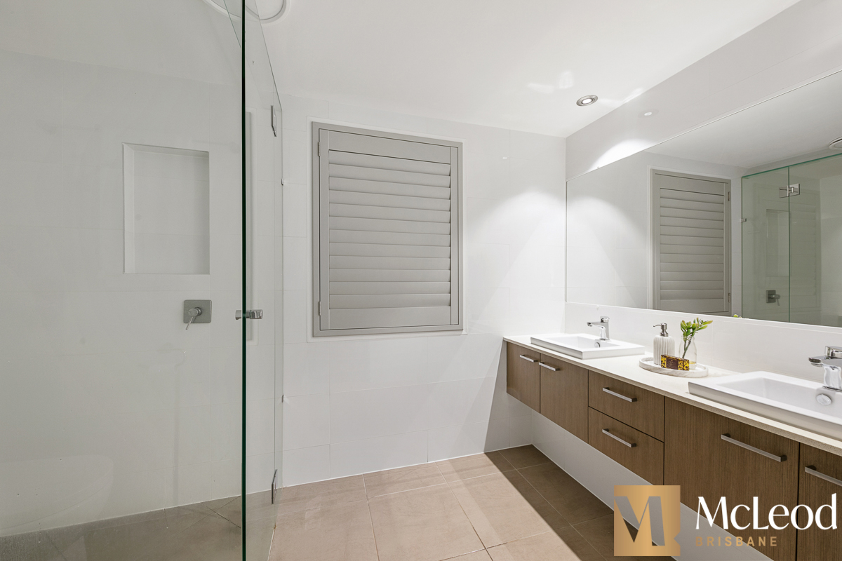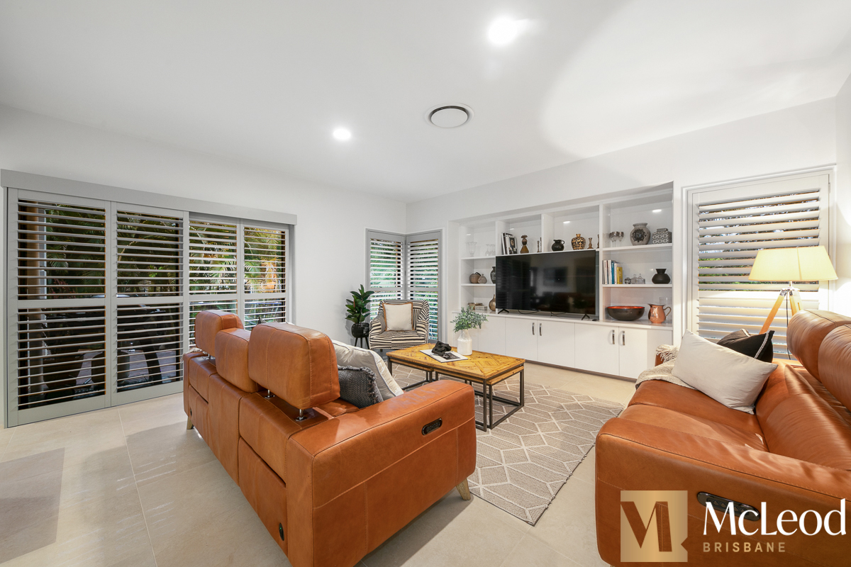 The seamless flow from inside to outside is exceptional and certainly what every Brisbane family needs for family gatherings and large party entertaining. There is space to lounge outdoors and to take advantage of the private green outlook towards Mt Coot-tha or to watch weekend sport on the wall mounted tv. Plus there is also space on the rear deck for alfresco dining overlooking the salt water inground pool complete with waterfall.