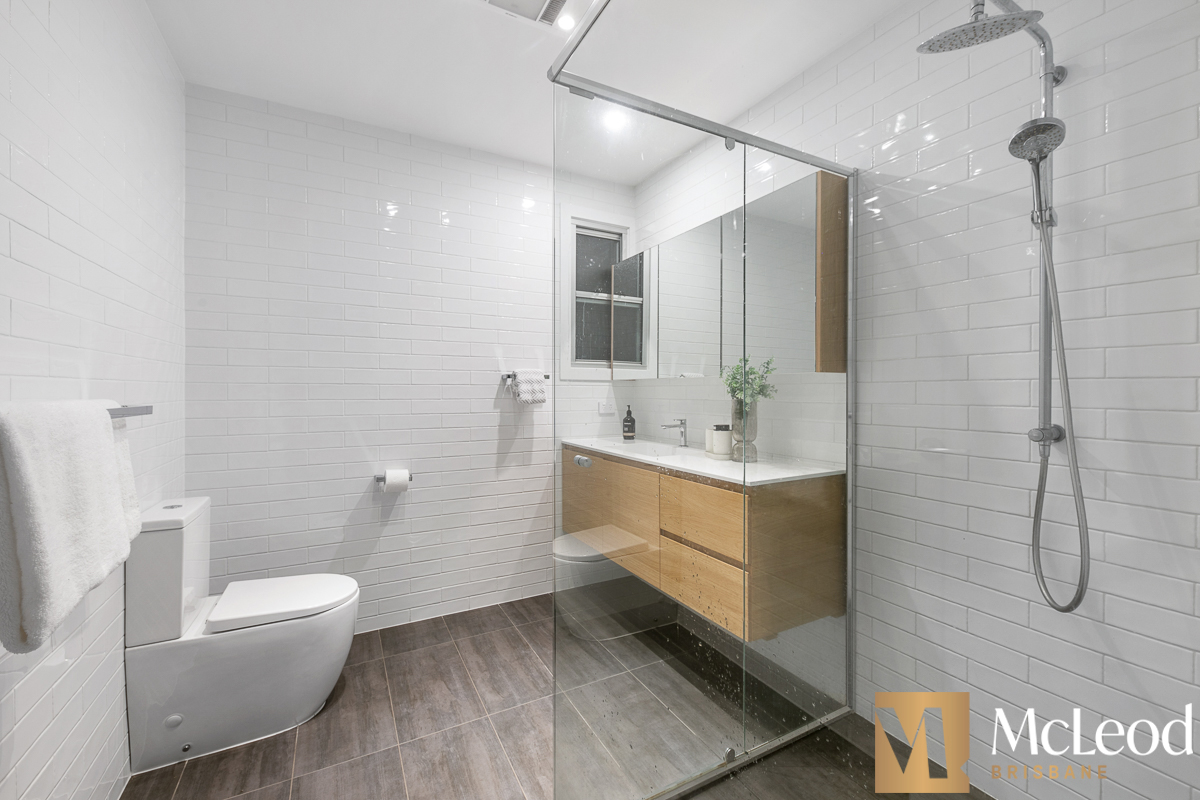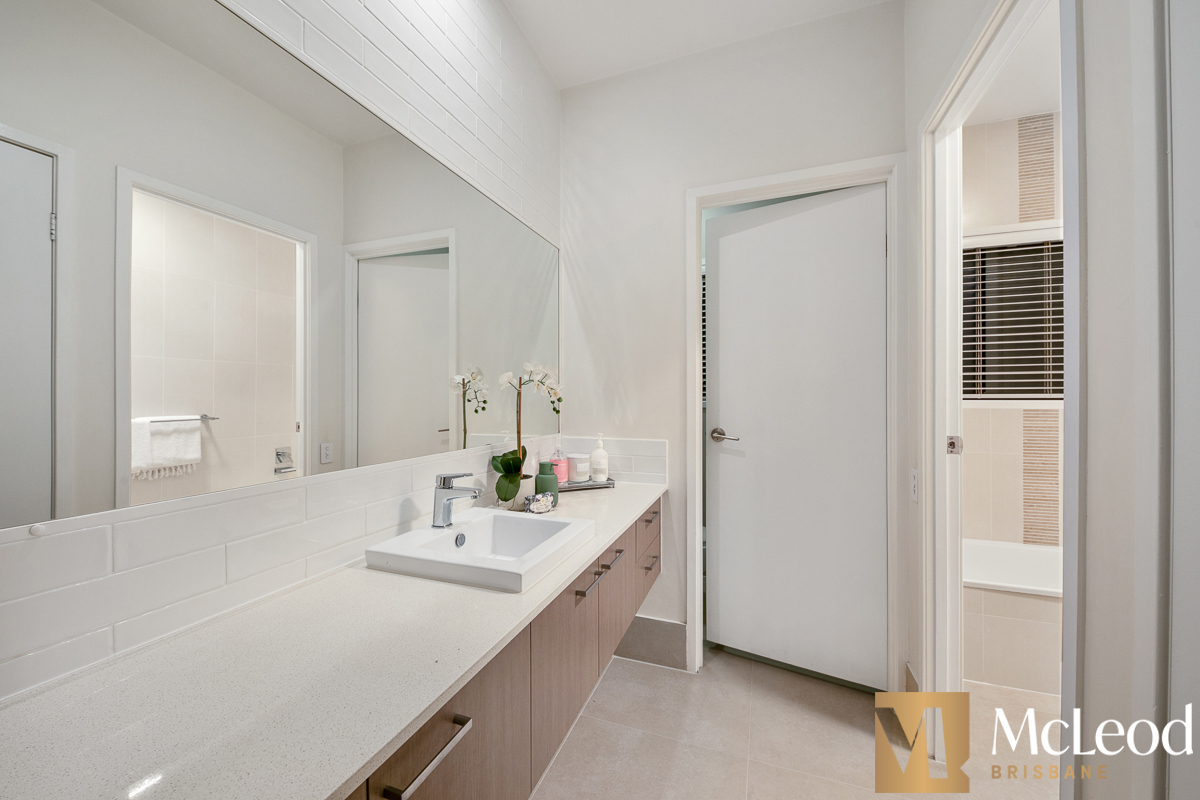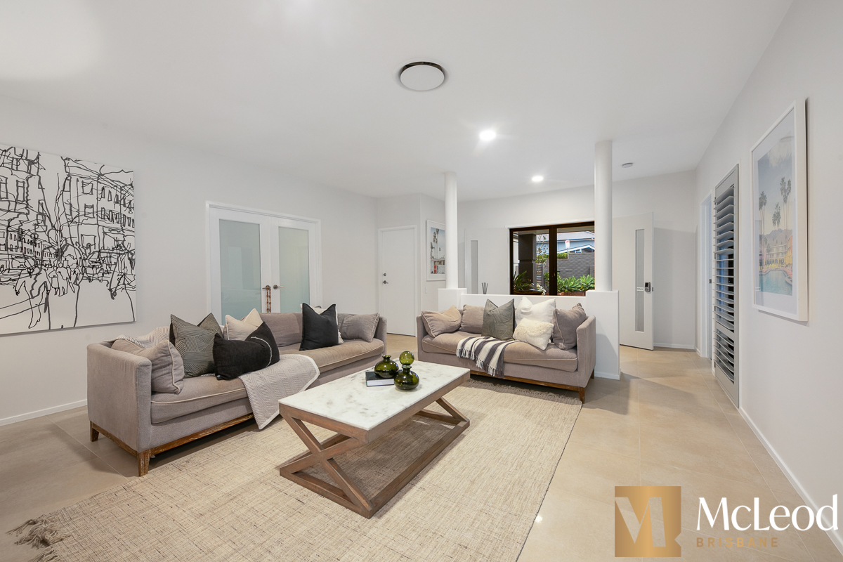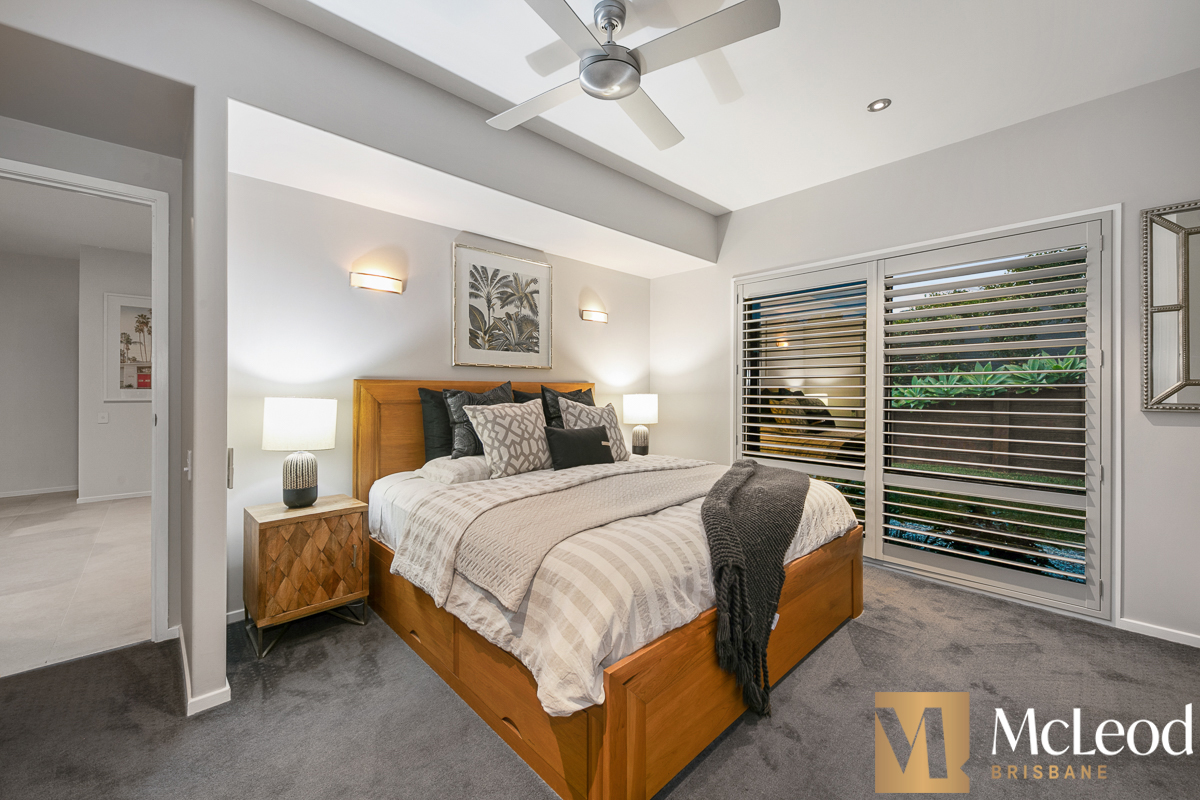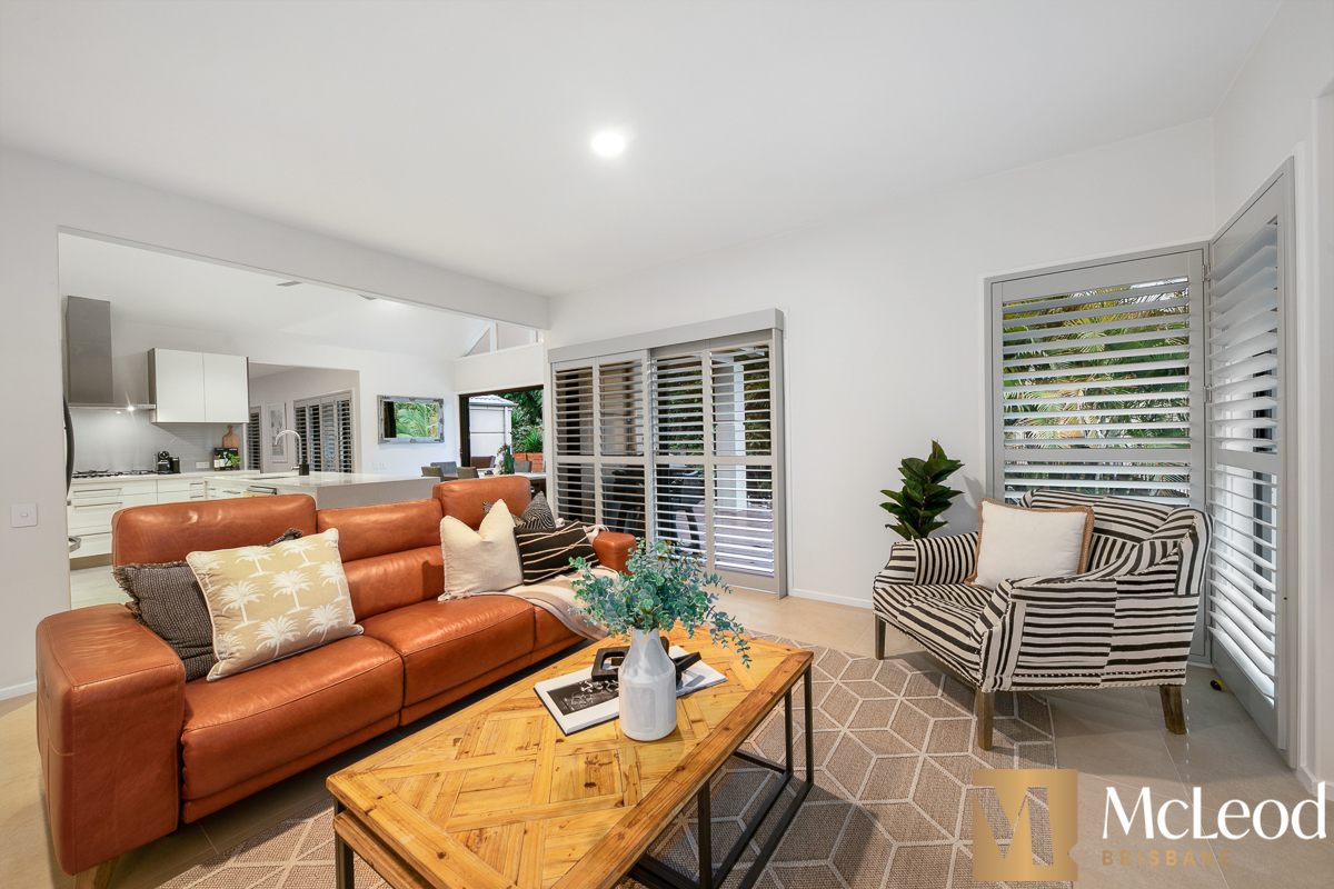 The seamless flow from inside to outside is exceptional and certainly what every Brisbane family needs for family gatherings and large party entertaining. There is space to lounge outdoors and to take advantage of the private green outlook towards Mt Coot-tha or to watch weekend sport on the wall mounted tv. Plus there is also space on the rear deck for alfresco dining overlooking the salt water inground pool complete with waterfall.