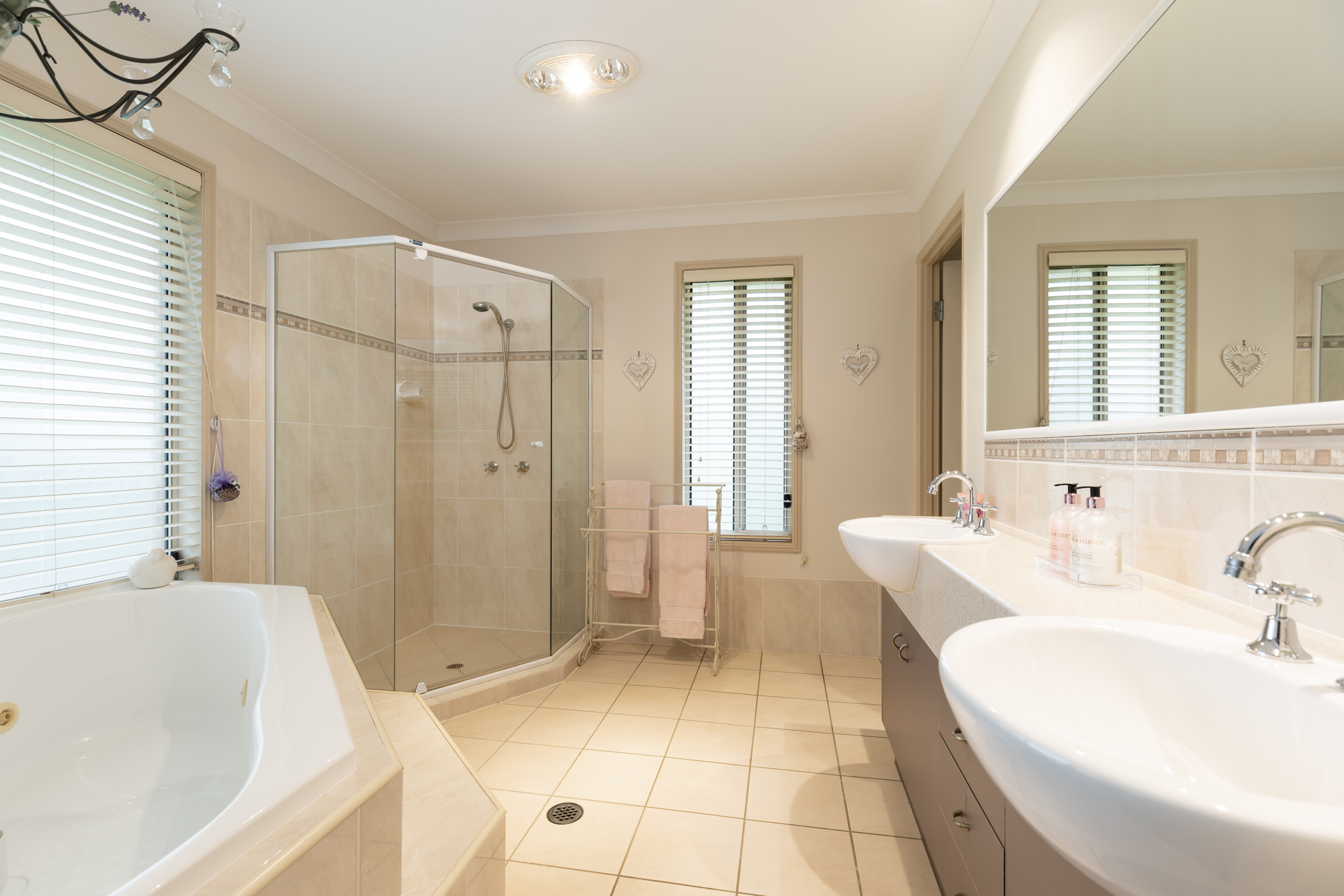 - Pristine family bathroom with separate bath and shower