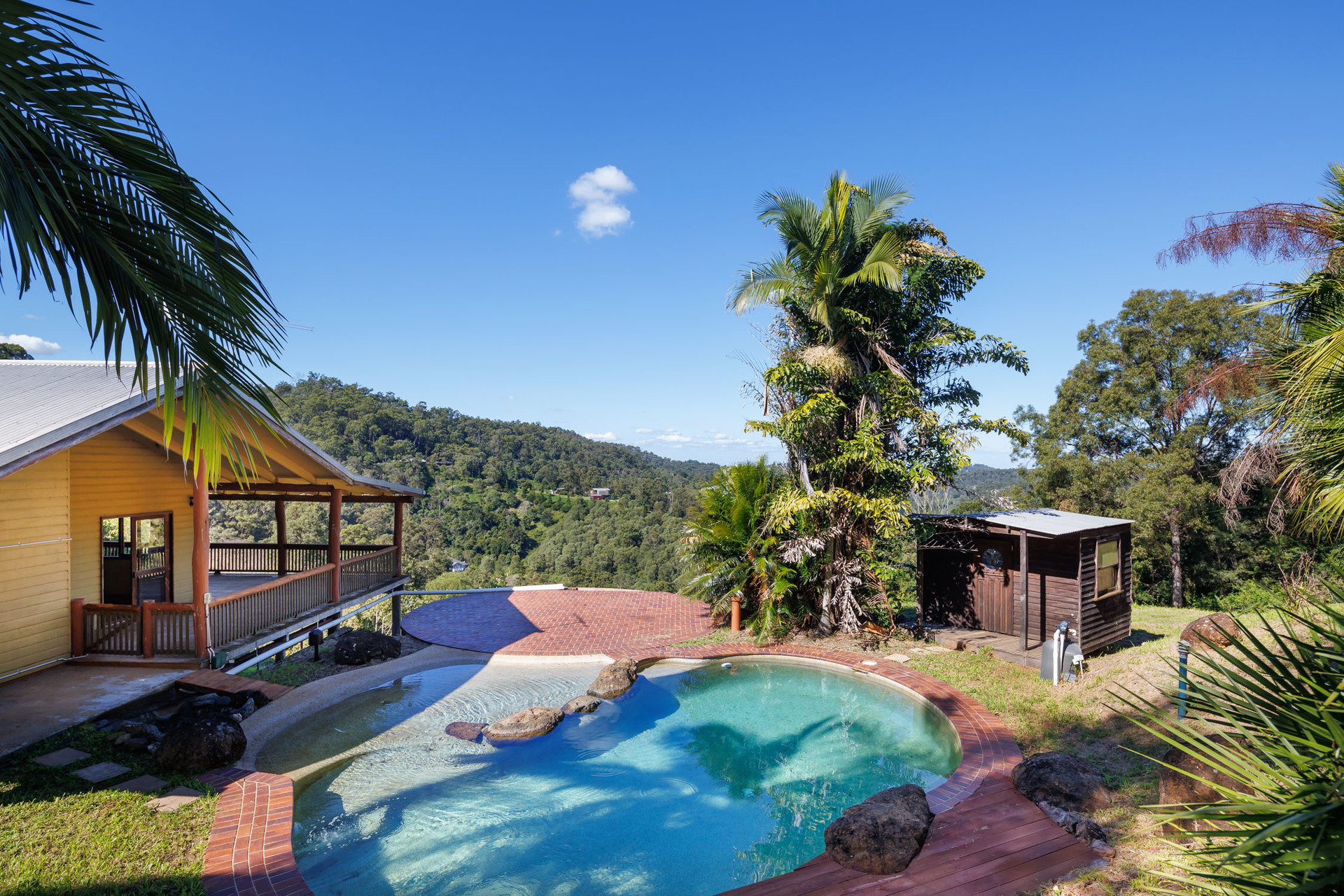 Additional features include: - 3 bedrooms, including 2 with private patio access - 2 bathrooms and a separate internal laundry - Master bedroom features a walk-in robe and ensuite - Living/dining room with raked ceilings and a fireplace - Open-plan family kitchen and an external cold room - Expansive entertainer's deck with mountain and valley views - 185,700sqm grounds with plenty of outdoor space and a pool - 8-car accommodation via the double garage and multiple carports - Abundant undercroft storage and room for a workshop - Access tracks to State Park - 4 mins to Upper Brookfield Primary, 15 mins to Kenmore High School - 15 mins to Kenmore Village, 21 mins to Indooroopilly Shopping Centre