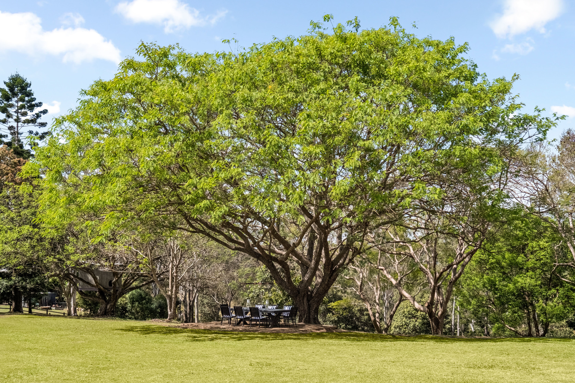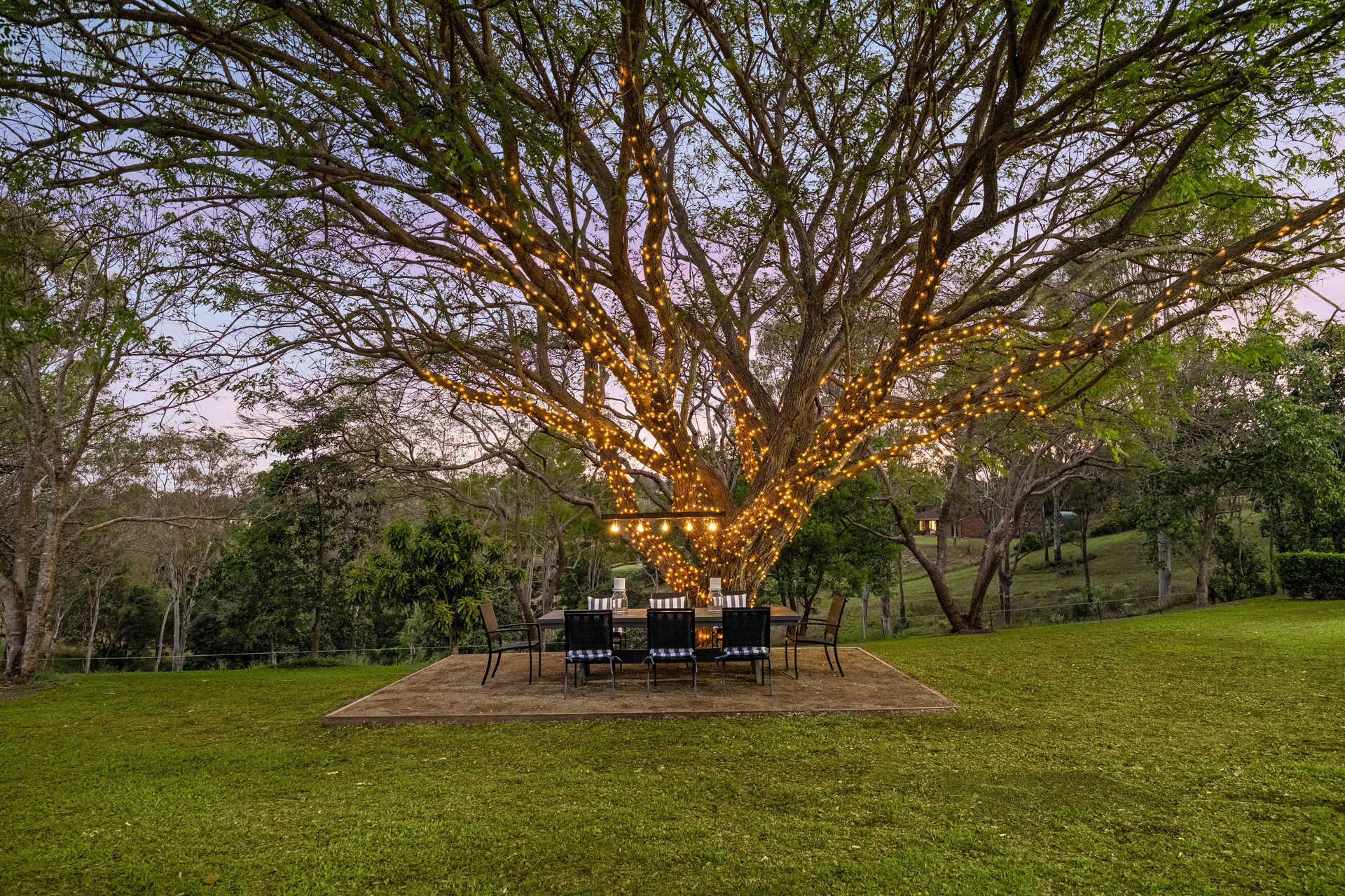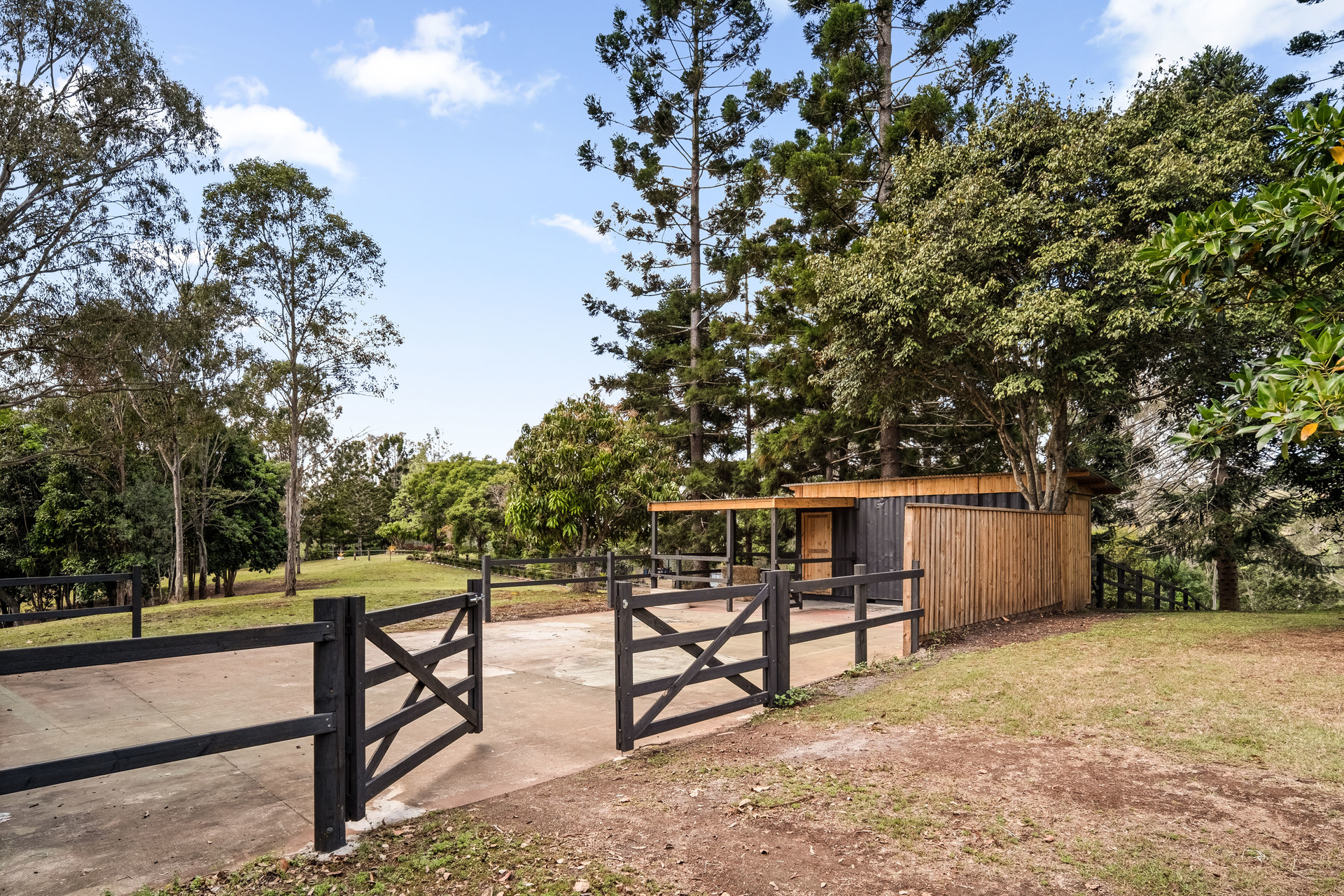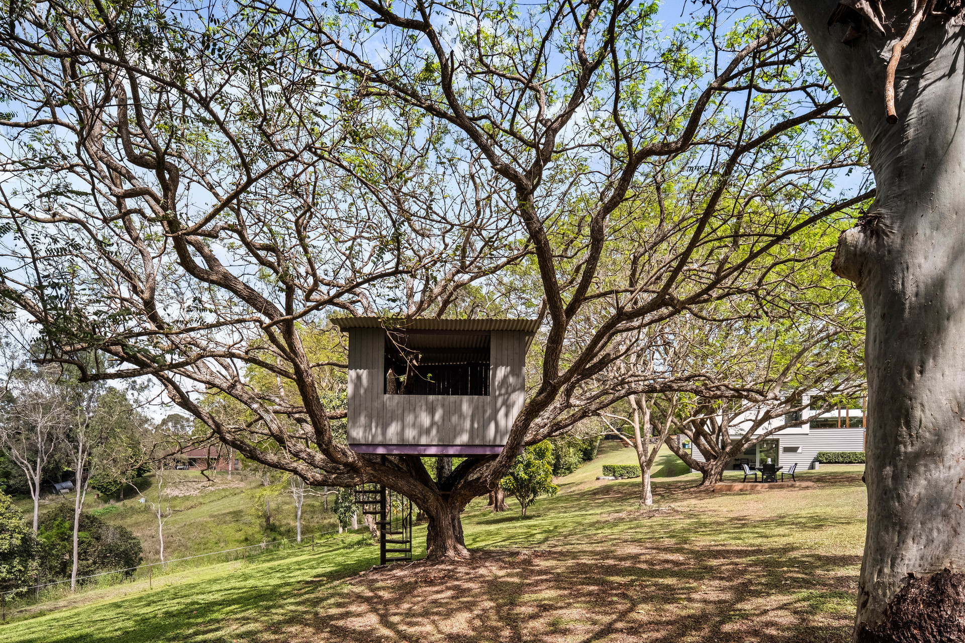 Outdoor alfresco area beneath an established poinsettia tree Artisan ventilated stone fire pit Fully fenced equestrian facilities w/ direct water supply & small, well-maintained woodland Custom-built treehouse w/ spiral staircase Fully fenced, walkable & drivable hilltop saddleback landholding