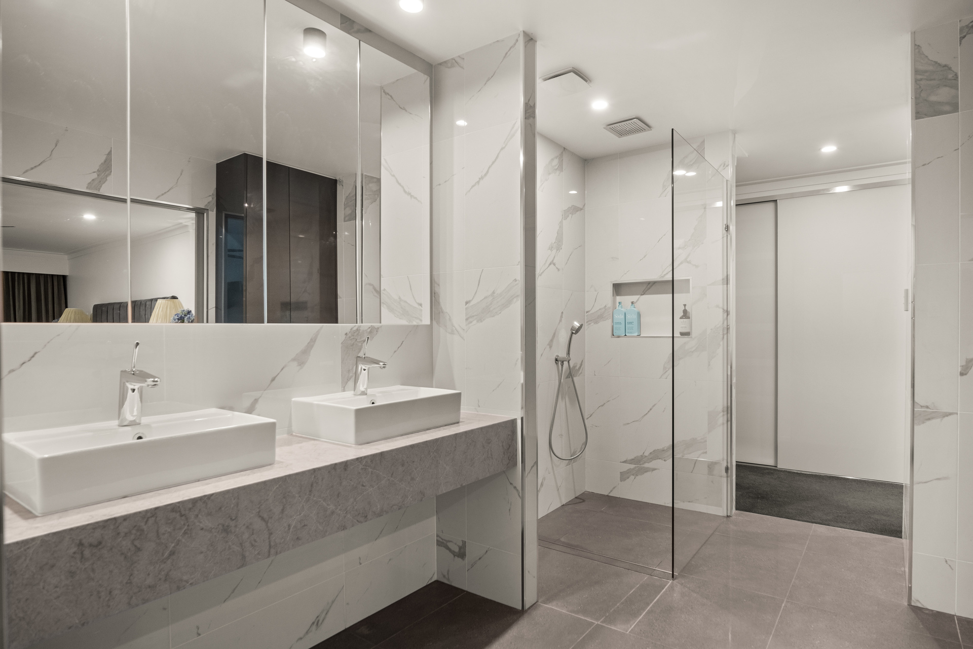 UNRIVALLED LIVING SPACES Highfield offers six spacious bedrooms, five luxurious bathrooms and three gourmet kitchens, in addition to an alfresco BBQ kitchen adjacent to the sparkling pool-perfect for entertaining. The master suite and two private, self-contained flats feature large hardwired study nooks and a secluded private office with extensive in-built shelving, provides further workspace opportunities.