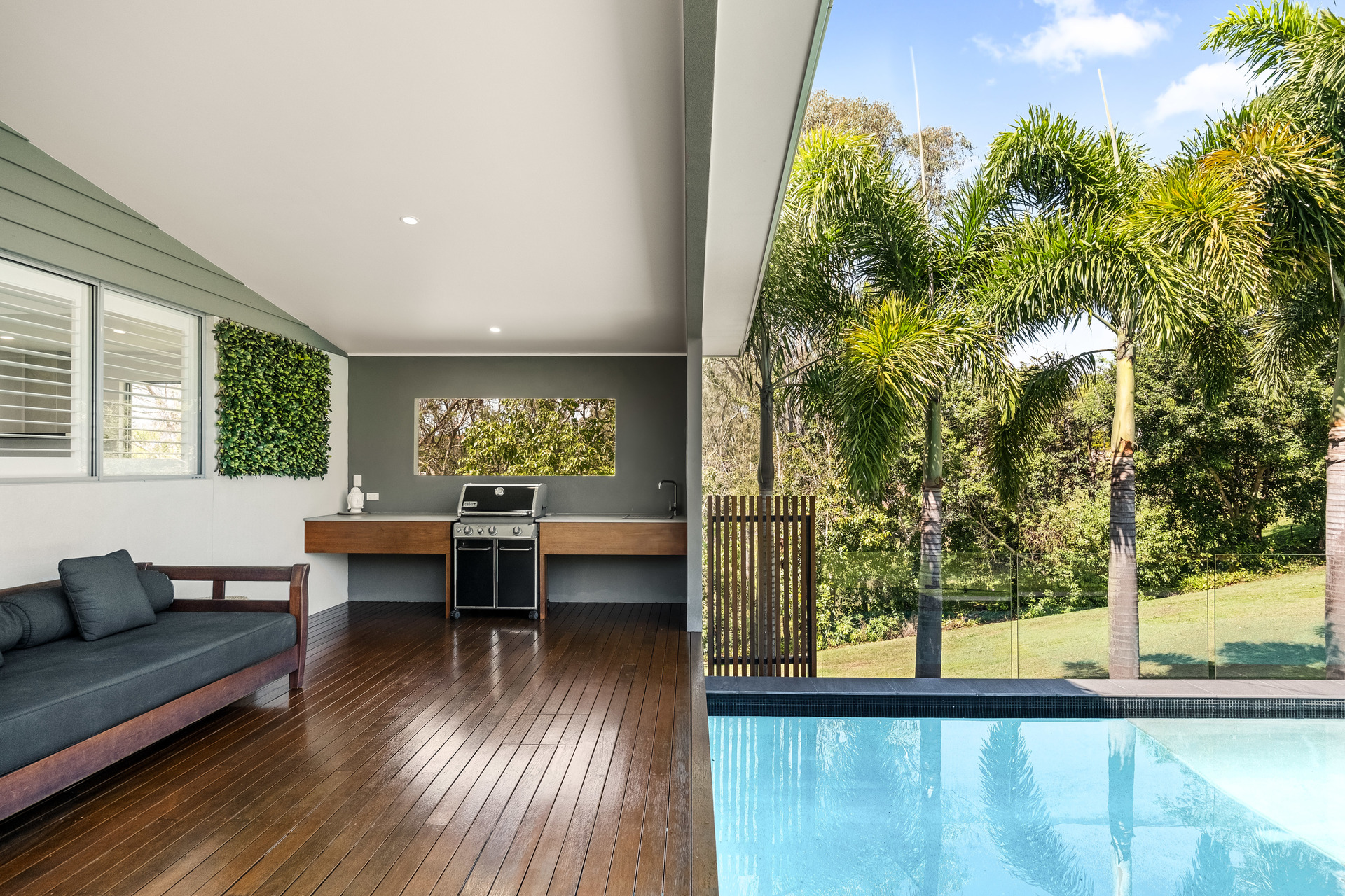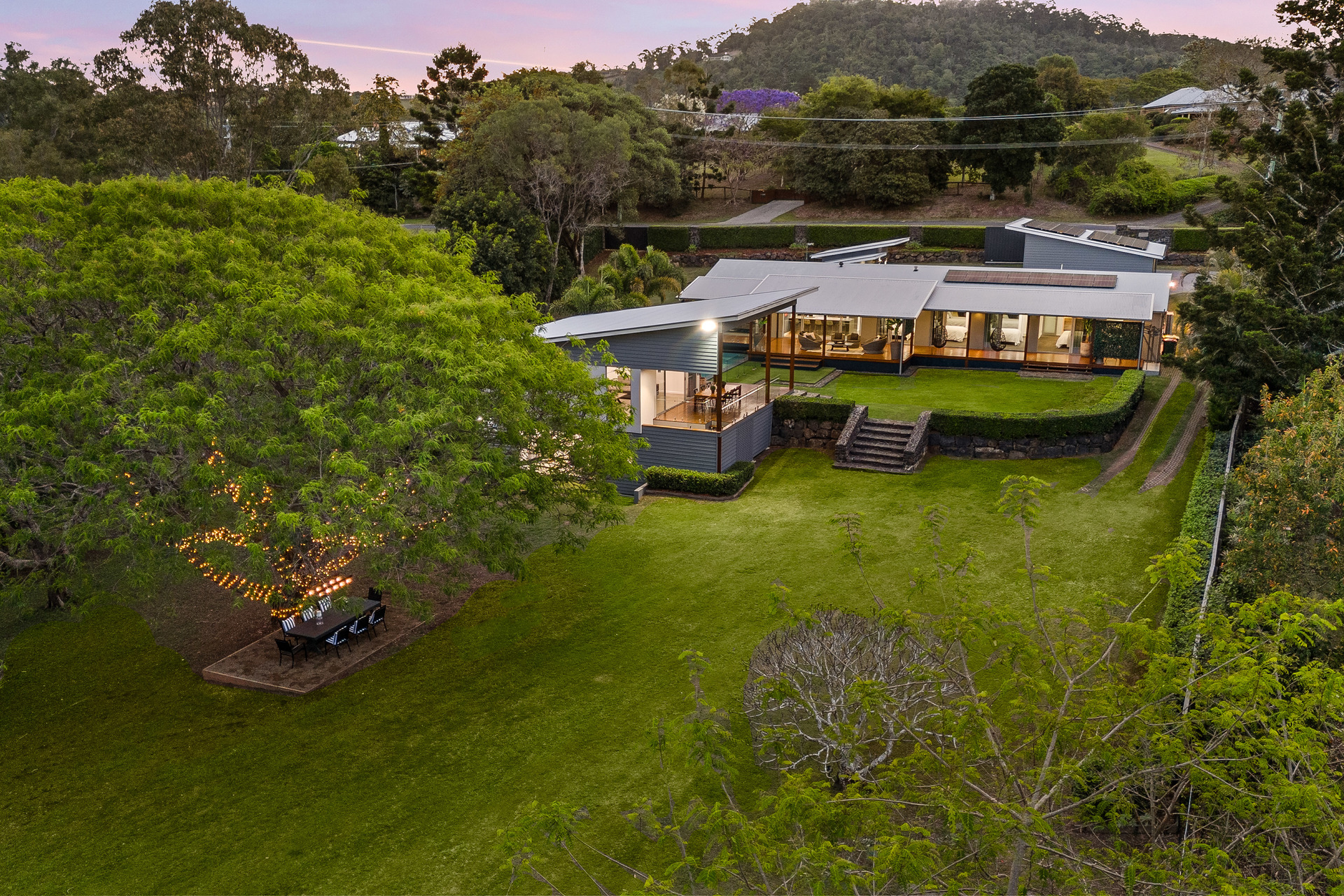 Designed with flexibility in mind, Highfield accommodates a plethora of generational and lifestyle choices, while leaving plenty of opportunities to add personal touches. Separated into two private pavilions, this home is perfect for growing families or multi-generational living arrangements. Northern and eastern aspects bathe the home in natural light, while the easily traversed flat saddleback of this rare hilltop landholding provides expansive views of the verdant surrounding countryside against a backdrop of the Mount Coot-tha hills.